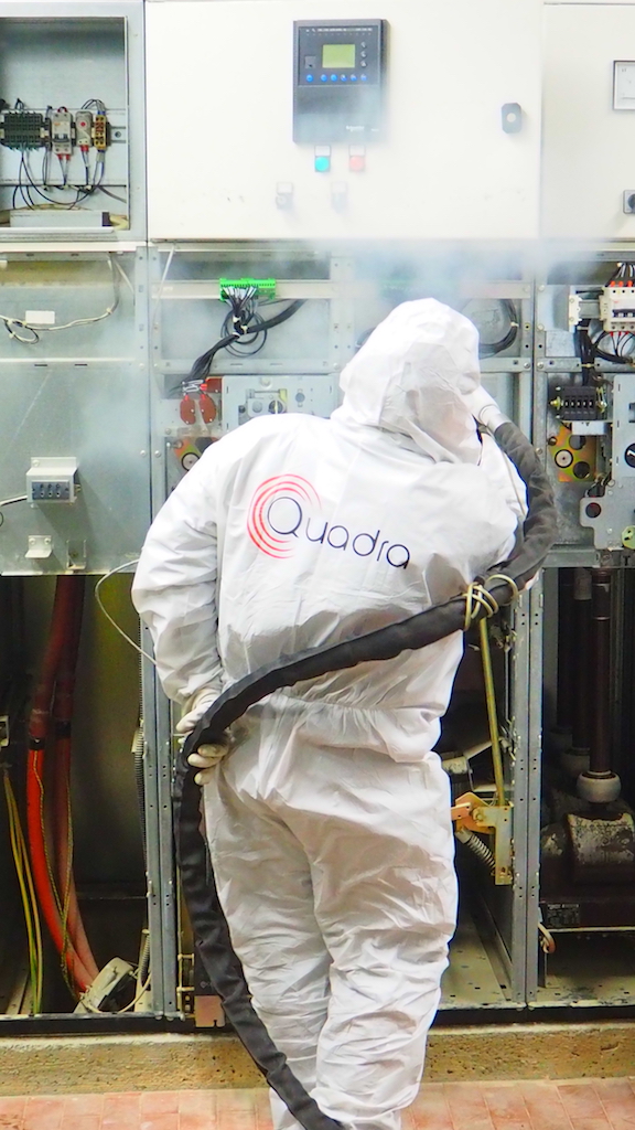 L’ozono o ossigeno arricchito è un forte disinfettante ed ha un alto potere sterilizzante, efficace su tutte le molecole organiche maleodoranti. QUADRA pratica la disinfezione tramite ozono come ultimo passaggio in ogni intervento di bonifica. Tutti i locali vengono trattati con 2 cicli di ozono per la durata ciascuno di 10 ore. La macchina da noi utilizzata produce 10.000mg/h di ozono con una portata d’aria di 500 m3/h. L’ambiente viene sigillato così che l’ozono lavora per saturazione ambientale, quindi tutti i materiali presenti vengono trattati e disinfettati da questo trattamento. A fine ciclo la macchina riconverte in ossigeno tutta l’area presente, è comunque bene arieggiare gli ambienti per qualche ora prima di soggiornarci.